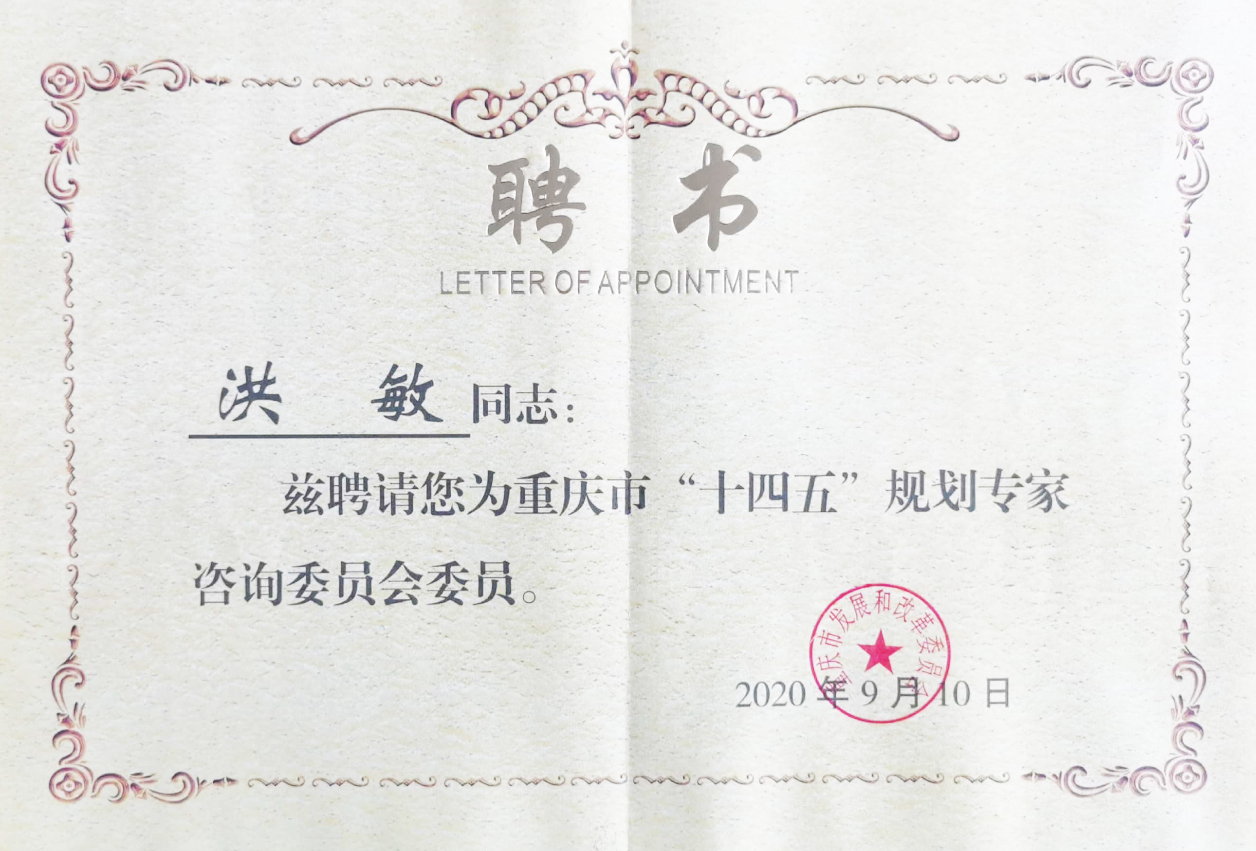 熱烈祝賀集團董事長洪敏 獲聘重慶市“十四五”規(guī)劃專家咨詢委員會委員